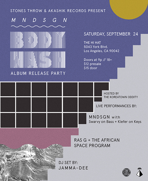 Mndsgn has a record release party in Los Angeles on September 24th at the Hi-Hat – Tickets available here – and more info below.