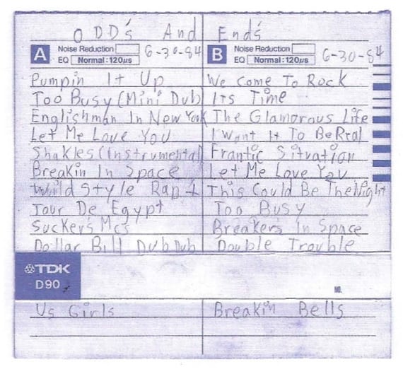 When I was 14, I was the only guy in the neighborhood with two turntables and a mixer. I thought I was so cool. I was definitely cooler then than I am now. Everyone would ask me for a mixtape and I only had a single tape deck so I had to make it from scratch every time. In the early days, I mostly created electro mixes, and then by the mid '80s, it would be slower tracks on one side and the faster ones on the other side. I realized that New York hip-hop – like Run DMC and The Fat Boys and stuff on the Beauty & The Beat label, like King Kut by Word Of Mouth – would be from the East Coast and the faster stuff – like Techno Scratch and Surgery, and Egyptian Lover and Arabian Prince – would be from the West Coast. So I'd do East Coast on one side and West Coast on the other. I still have all my tapes from the '80s and '90s. I have all my demos. I have rap songs I recorded in the mid '80s. I have it all. I spoke for a bunch of fifth graders last year and brought all my tapes to show them what I was doing when I was 'their age'. They didn't seem to care at all, and when I was packing them all in the trunk I accidentally left a box underneath my car and ran it over. All destroyed. God has a sense of humor.